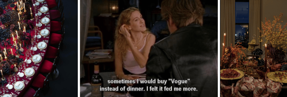 Carrie Bradshaw once said “When I first moved to New York, I was so totally broke, sometimes I would buy Vogue. It fed me more.” While this unfortunately reflects the heavily disordered eating habits of the time, it’s become relevant once more. Like the first law of thermodynamics, energy is never created or destroyed, only converted from one form to another. Food is instead visually consumed rather than digested, and the food left uneaten becomes the next “it-girl accessory.”