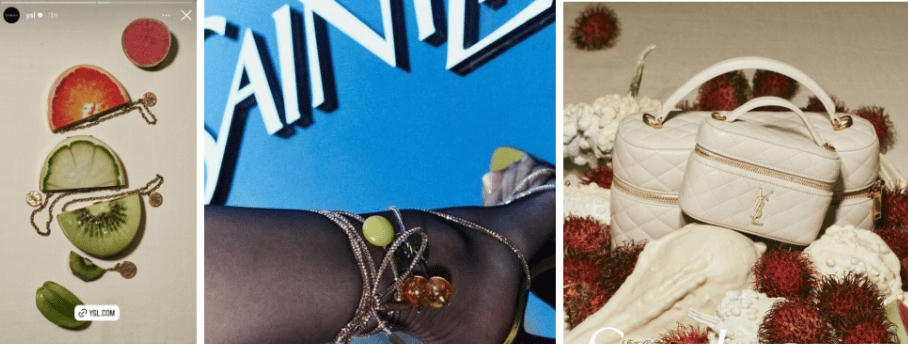 Dessert: YSL drops their resortware collection, with campaigns using fruit as confetti and each shoe adorned with a different fruit charm.