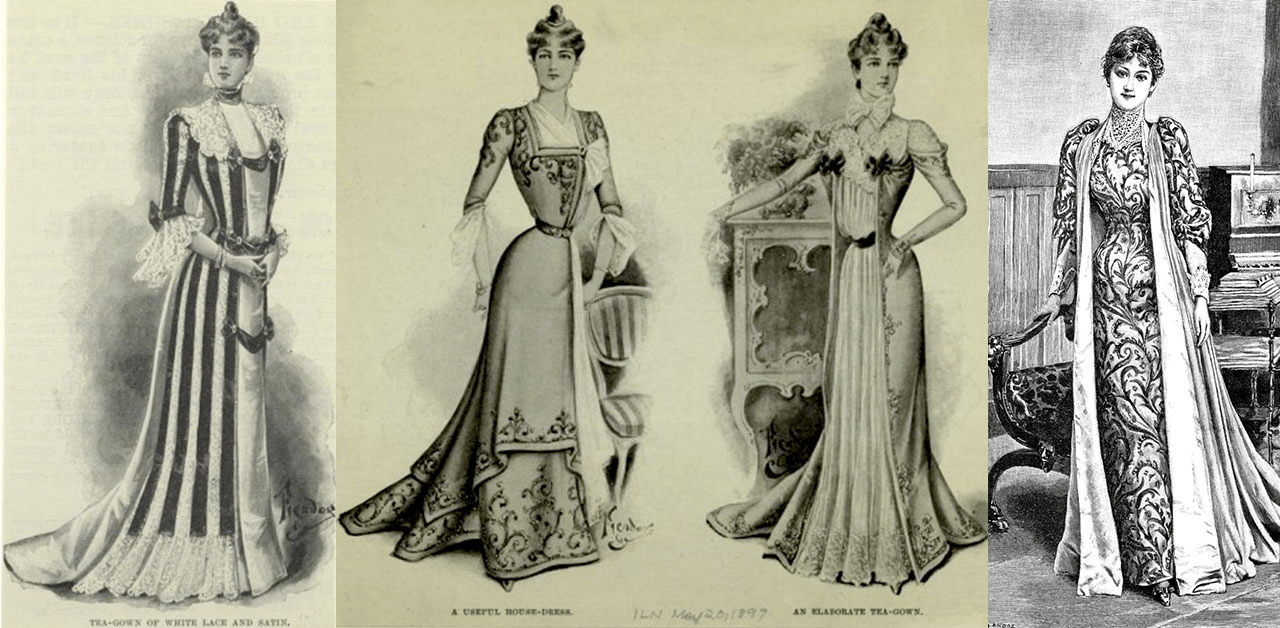 19th Century: The Victorian Era established parties as ulterior motives, often used as displays of exclusivity in this time. Whether for financial, social, romantic, or political gain, parties were extremely curated affairs. Party attendees might have between 4 to 5 changes of clothes each day for a 3-day party. Afternoon teas–the historically canonical brunch–were also common during this time, which introduced the less-formal tea gown. Made out of a lighter silk or chiffon, these gowns offered less restriction on movement.