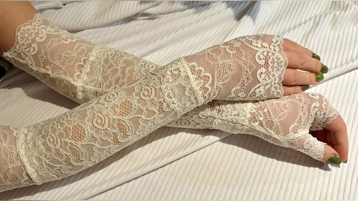 Cut a pair of lace tights to make classy fingerless gloves