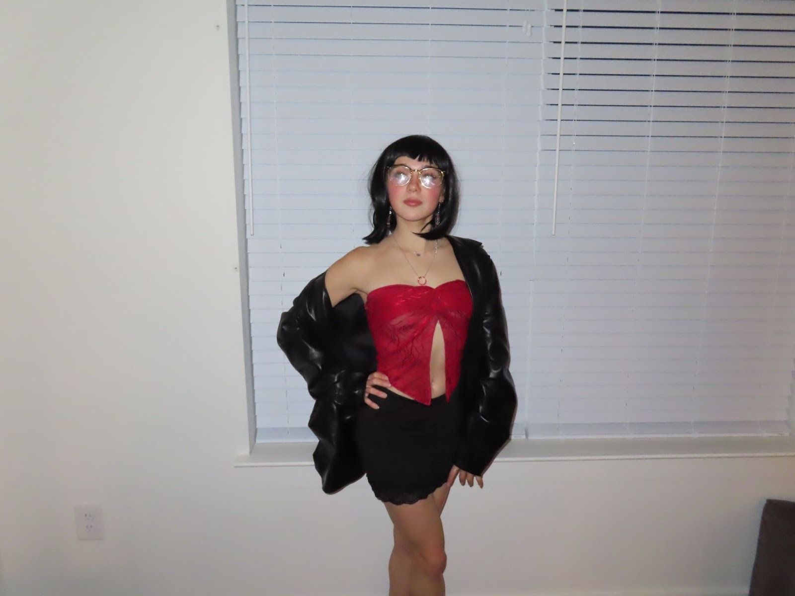 Edna Mode . Hello, Darling! This one was so much easier than I thought. I bought a short black wig (thank you Amazon next day shipping ),threw on some glasses, a red top, and a skirt. I’ve got to be real, this outfit was incredible.
