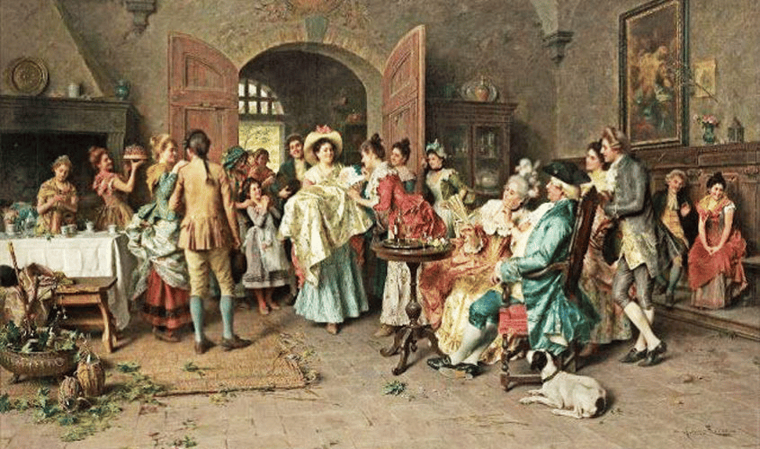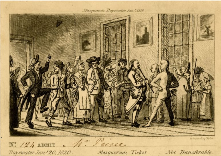 Costumery as a party theme emerged in this time period. With the rise of masquerade balls, party guests began getting more creative with how they presented themselves. Outfits were very curated to particular universally-recognizable themes, like historical characters or objects.