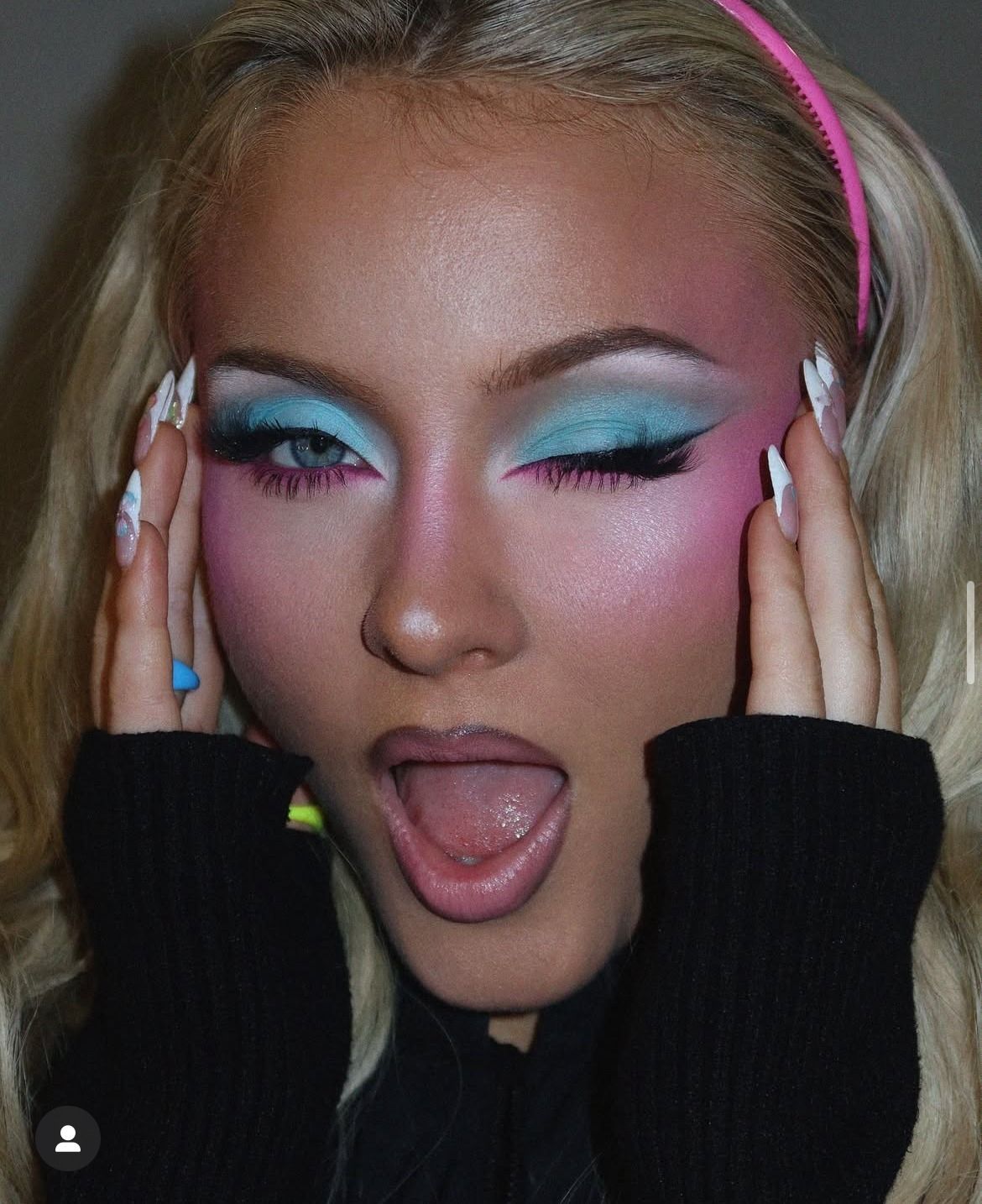 These looks are absolutely stunning. Every face is unique and intricate, yet everything feels so cohesive together. I love how clearly you can see the Y2K and â80s references, but it all still feels fresh and modern. I hope this is a sign that bright, bold, MAKEUP makeup is coming backâ Iâve felt so alone in a world addicted to âclean girlâ and soft glam. Sinotâs make up style is so fab, so chic and so fashionable because it complements Zaraâs looks and artistic expression for the Midnight Sun era. Click here to see more of Sophia Sinot and Zara Larssonâs work.